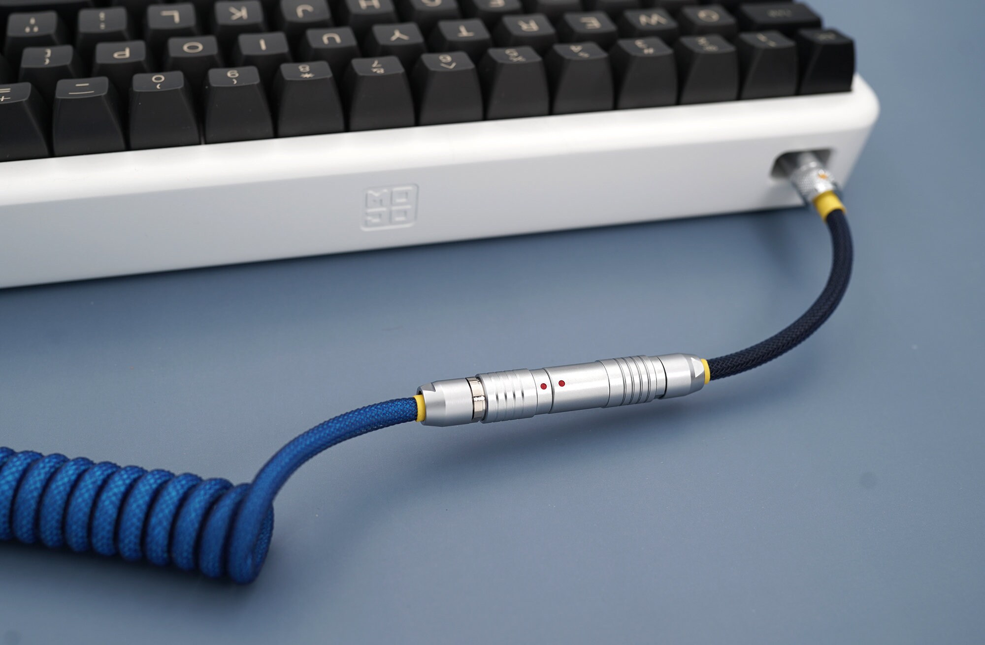 Coiled Aviator Cable - Soft Blue. DayTech Custom Coiled Aviator Keyboard Cable. Come hang out with us.